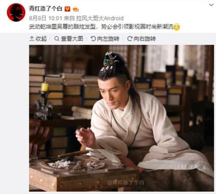 胡歌,被誉为古代服饰之神,无法摆脱这种发型。胡歌穿着中原的古装,他的气质是一种温暖而柔和的气质,但他头上的发型就像野蛮部落的头发一样。因此,这个发型的胡歌给人一种奇怪的感觉。