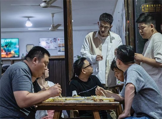 李耀阳与女主角坐在石头上,而男导演在旁边气急败坏地训斥两人,嫌弃他们不会拍“吻戏”。期间还用动手摁着两人的脑袋,不停地往一起靠。
