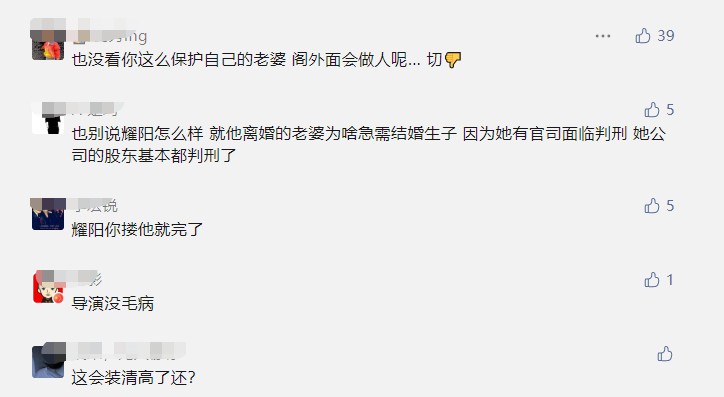自己的孩子和妻子都不管,在外面为别的女人出头!现在给自己树立“好男人”的形象,是不是太晚了一点?一个接一个的前任,一个接一个的绯闻,这样的人谈什么心疼“女人”,是不是有点滑稽?(李耀阳和丹sir的事情争议比较大,所以这位网友的评论,大家听个乐就好了)
