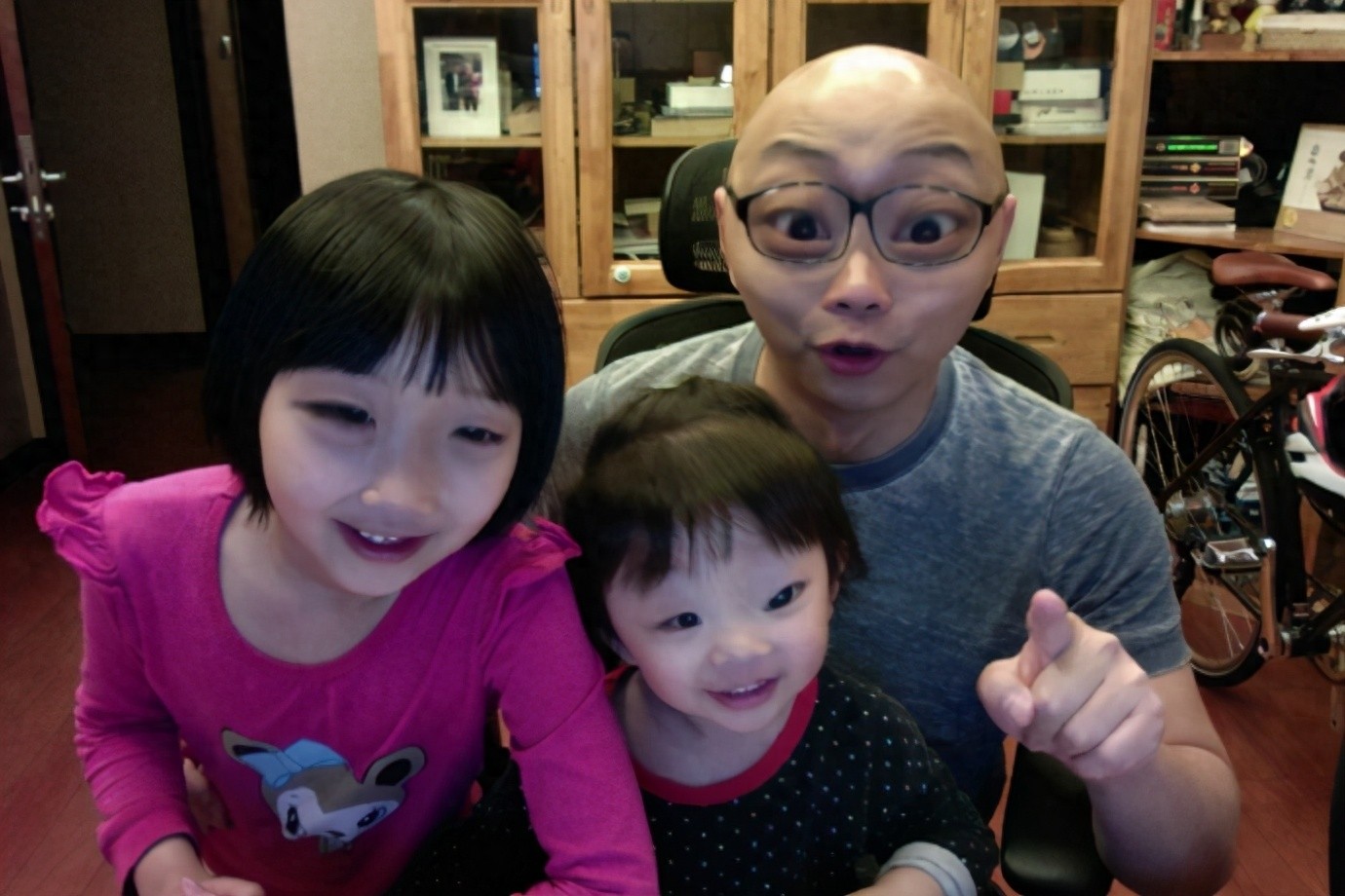 下班回到家总会抱抱女儿,晚上也会陪女儿玩一会游戏,同样在睡觉的时候也会用讲故事的形式 哄女儿睡觉。