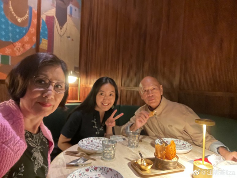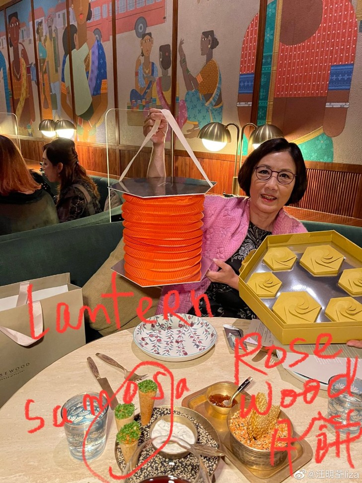 9月21日,汪明荃在社交平台晒出中秋节与老公女儿相聚的照片,并配文:“印度菜好好吃”,几人状态引起网友热议。