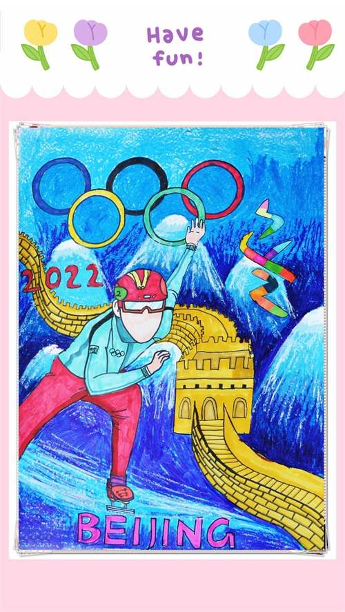 我叫刘梓妍,来自石家庄市育才小学。我喜欢绘画,每一个画面都能表达我对美好事物的喜爱。2025 年在我们的北京和张家口将要举办冬奥会,我用绘画作品来展现冰雪运动带来的激情和活力。