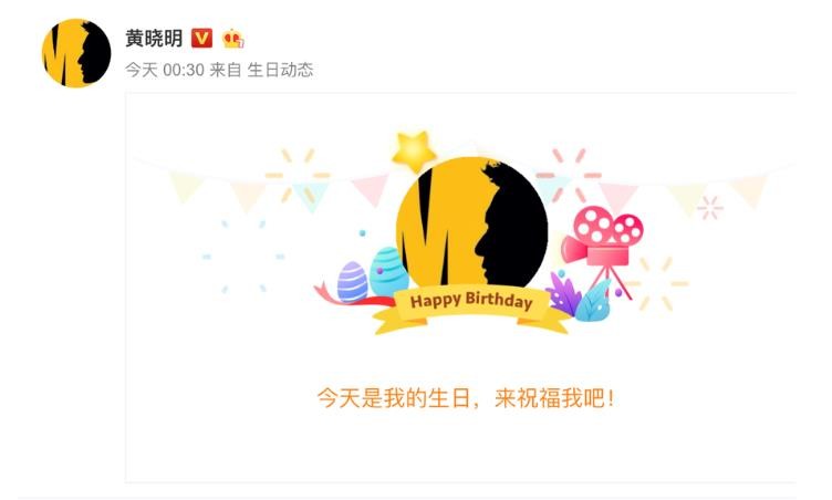 baby发文为黄晓明庆生 获甜蜜回复顺带三个亲吻