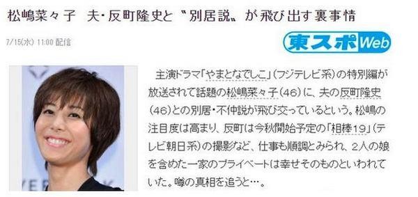 47岁松岛菜菜子疑似婚变 传已与老公分居