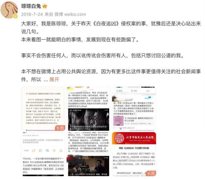 由于关键证据缺失,此事后来不了了之,陈琼琼的微博置顶如今仍是这起侵权案的相关内容。而《白夜追凶 2》也一直拖到去年才开机,据说核心设定有大改动。