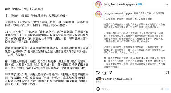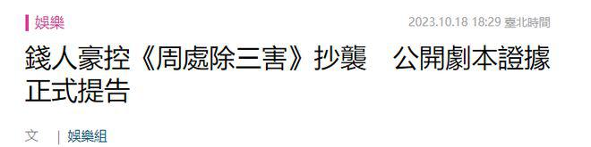 电影风光无限,伴随而来的却是 " 抄袭 " 争议,台湾编剧兼导演钱人豪,公开称《周处除三害》抄袭了他的故事。