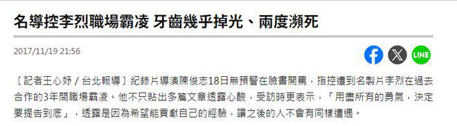 2025 年,她被拍过《美丽少年》《玫瑰战争》等纪录片的导演陈俊志公开控诉职场霸凌。