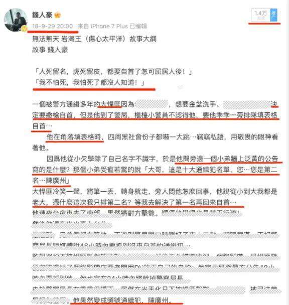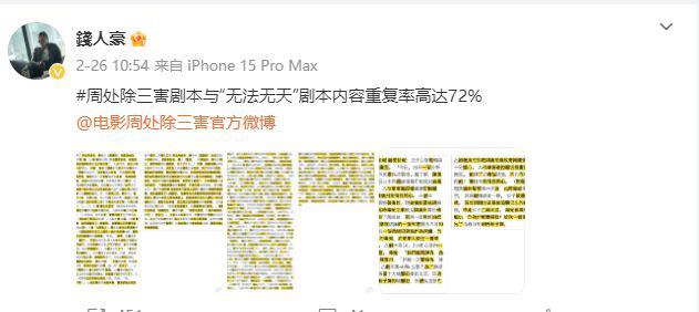 这一点我还挺不解,按我自己的写作习惯,是不会将手头没完成的稿件公开的。我也问了一位导演朋友,他说确实有些人会把剧本分享给交情好的同行朋友,希望吸纳修改意见,可是像钱人豪那样直接把剧本大纲发在微博上,他也不懂是什么操作。