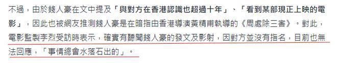 对于钱人豪的指责,片方指都是造谣,还起诉钱人豪诽谤,由于案件正在审理中,片方选择不公开资料。