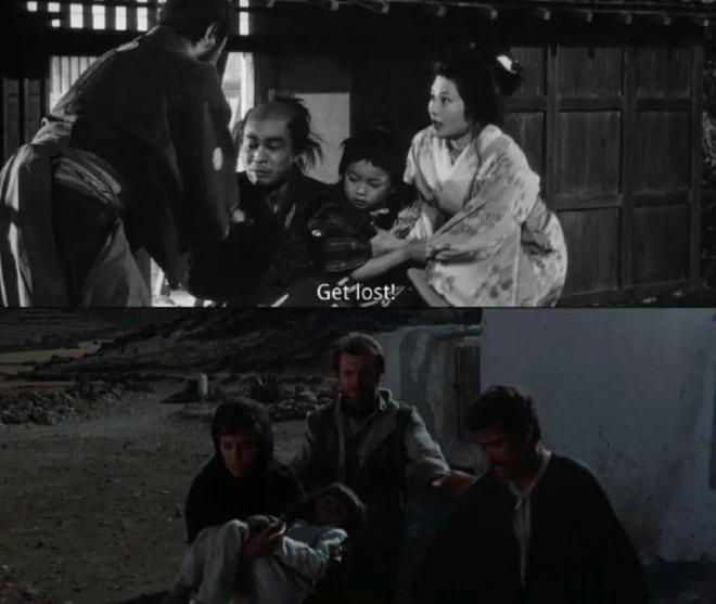 1964 年,莱昂内把黑泽明在 1961 年的电影《用心棒》改编成自己的《荒野大镖客》。除了场景由日本村落换到西部小镇,拿刀变成玩枪,其他人物设计、情节走向甚至台词,都跟黑泽明的《用心棒》如出一辙。