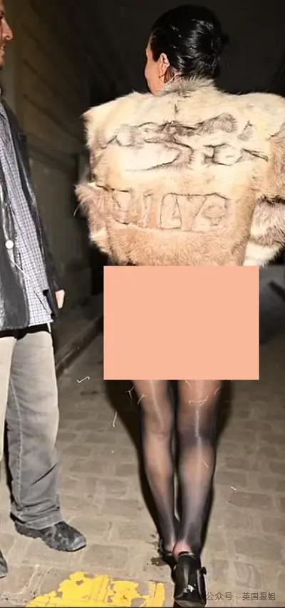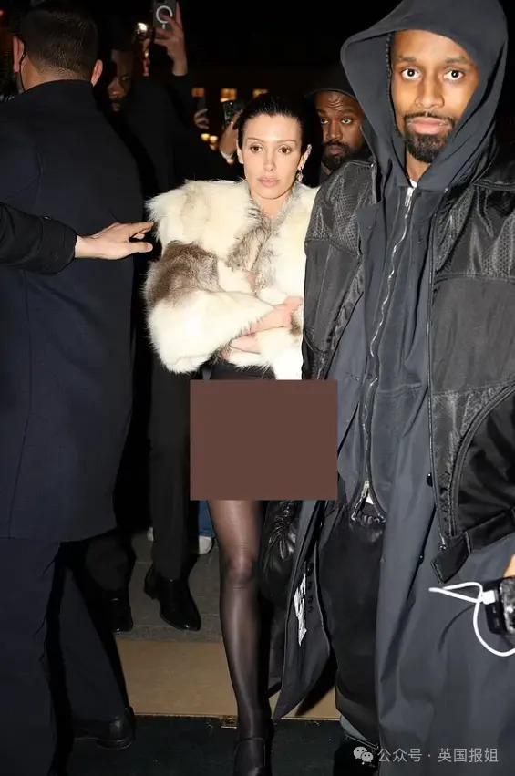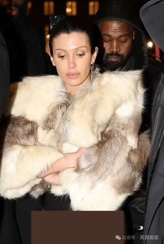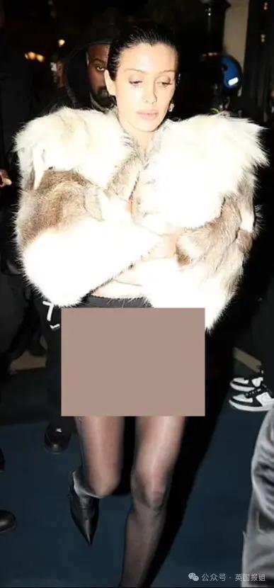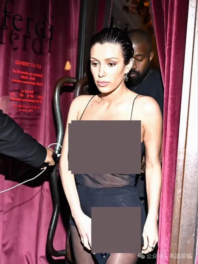 2 月 28 日,比安卡在巴黎和侃爷共进晚餐时,穿了另一件透明紧身衣,这次甚至没有上一次的短款毛皮大衣遮挡上身,她全身的隐私部位都处于无遮挡状态。