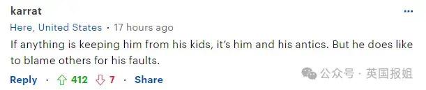 " 如果有什么让他和孩子们分开的话,那一定是他和他的各种迷惑操作。但他的确很喜欢把自己的错归咎在其他人身上。"