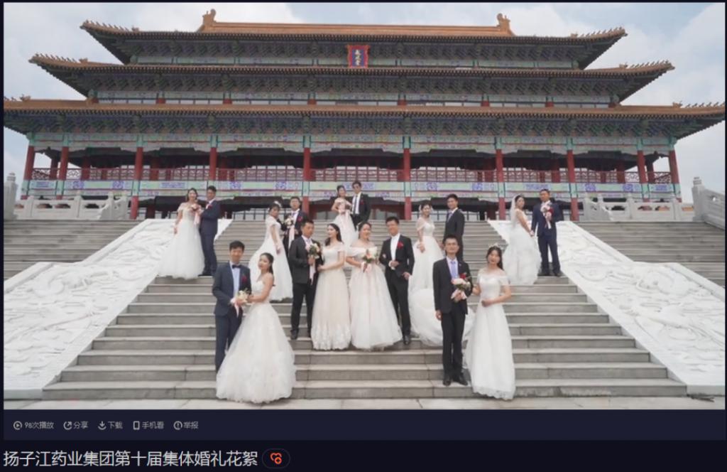 别说,扬子江药业的员工福利之一,就是在总部举办集体婚礼: