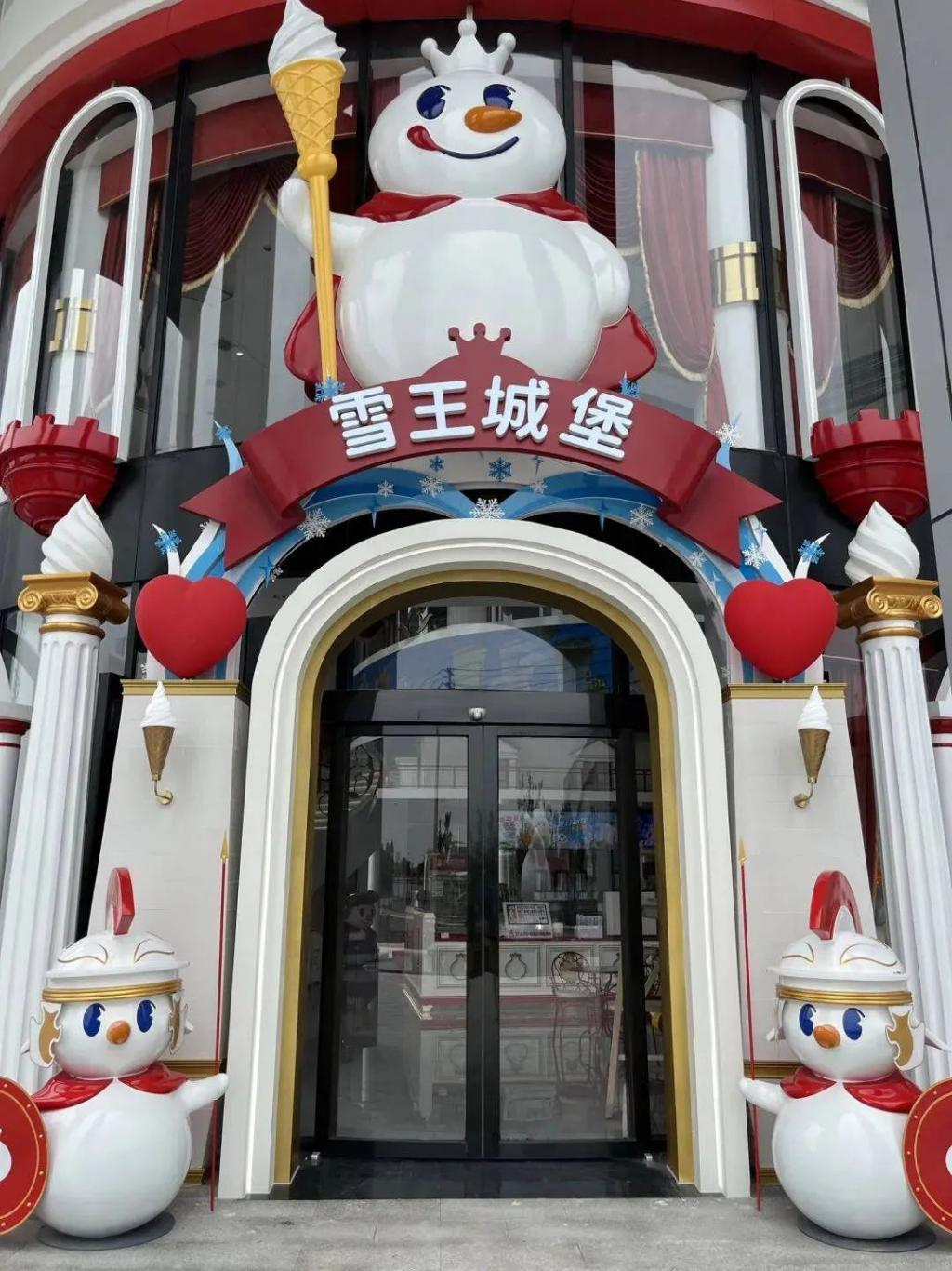 比如网红奶茶品牌蜜雪冰城,就在去年盖了一个梦幻的雪王城堡,成了 " 更适合中国宝宝的迪士尼 ":