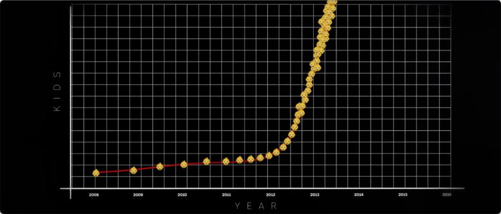 从统计曲线图上来看,2012 年之后,强纳森捐精的次数呈现指数级增长。