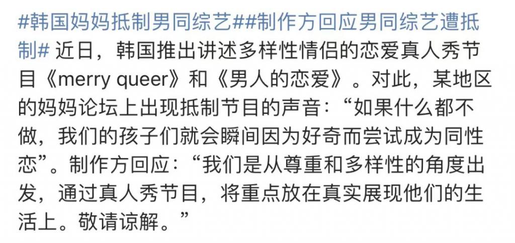 有人在论坛发帖,反对这档节目," 千万不要用节目美化并正当化这种不应该的事情 "。