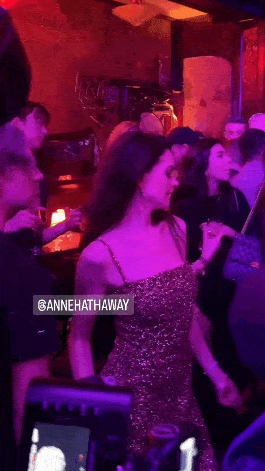 秀后派对中安妮 · 海瑟薇尽情唱歌跳舞 ↓