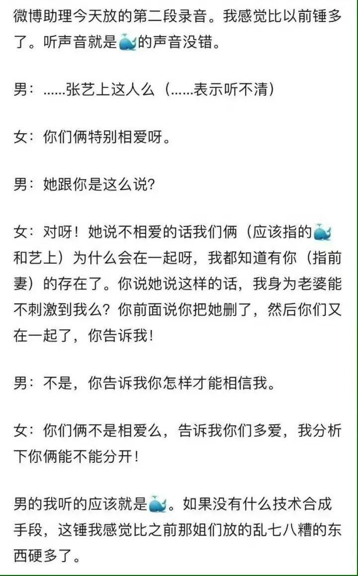 大概意思是,黄景瑜婚内出轨女艺人张小姐被王雨馨质问,黄景瑜并没有否认,从声音能听出来,这个人就是黄景瑜。