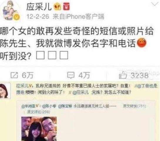 对于这事,精明的应采儿立马 回应,我怎么不知道你们是兄弟?这么胡乱地称兄道妹,太不尊重已婚人士的家属,请自重。