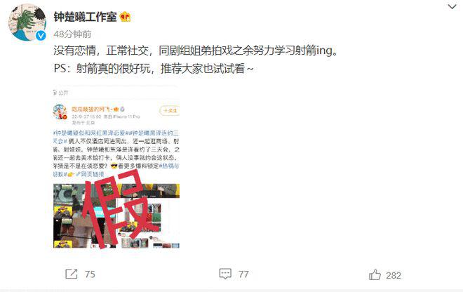 网易娱乐 9 月 27 日报道 27 日,钟楚曦工作室发文辟谣钟楚曦与黑泽恋情,称两人只是在正常社交,没有恋情 " 同剧组姐弟拍戏之余努力学习射箭 ing"。此前曾有八卦媒体爆料称钟楚曦与黑泽曾连续三天同框外出约会,还一同出入酒店,疑似恋情曝光。