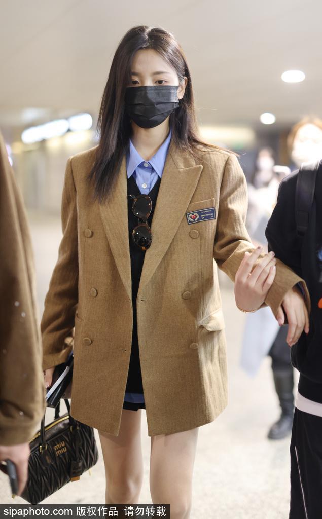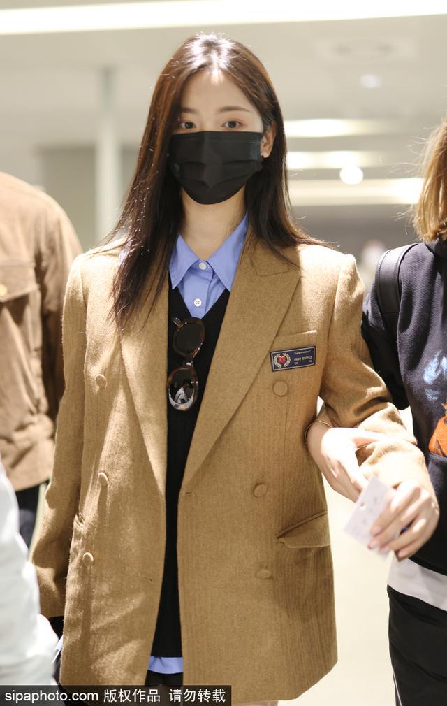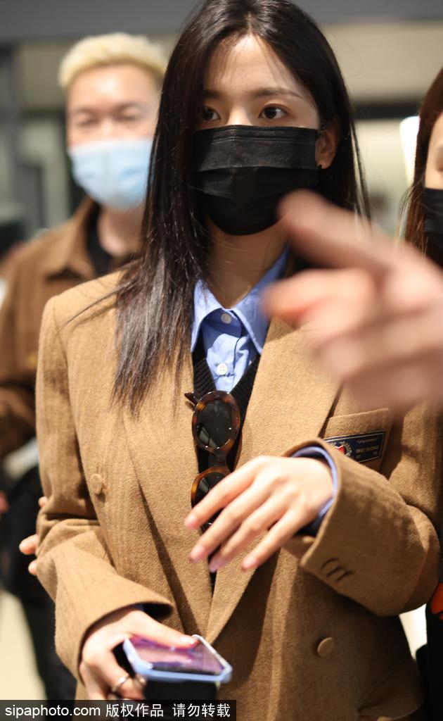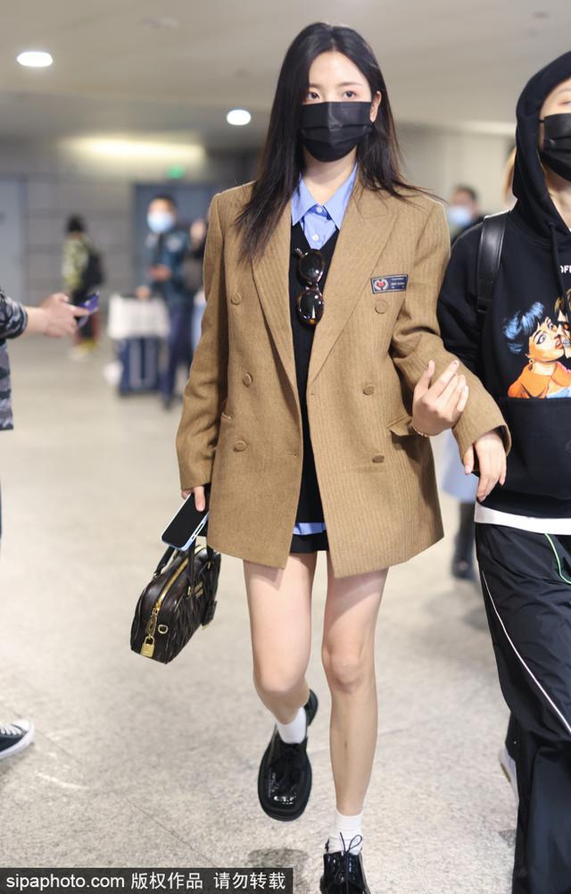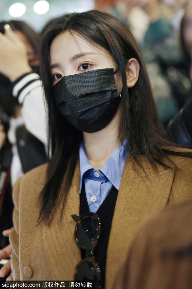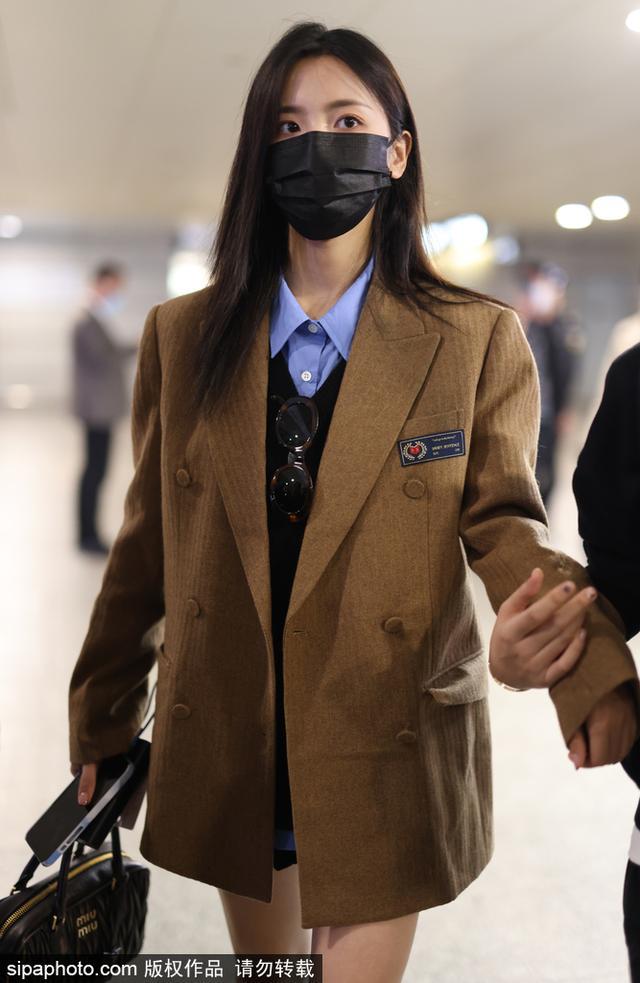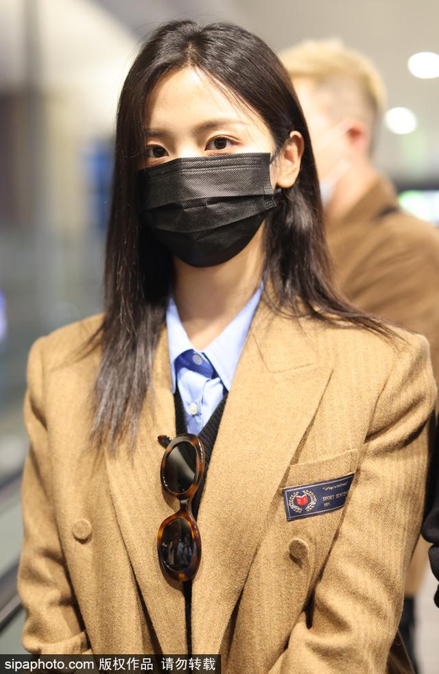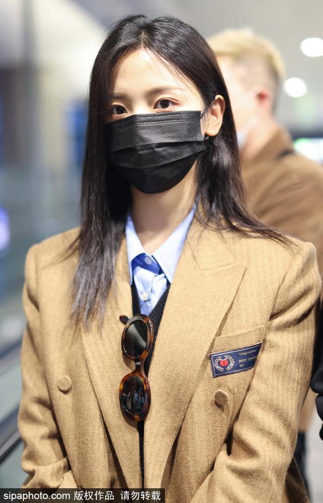 新浪娱乐讯 2022 年 11 月 21 日,上海闵行区虹桥机场,杨超越长发披肩口罩遮面 ,身穿 JK 制服现身机场 ,大秀美腿。(sipa/ 图)