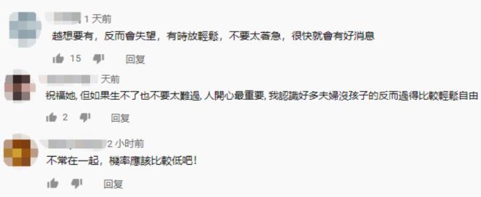 不少网友留言鼓励林依晨,希望她放松心情,对怀孕一事顺其自然,但也有人表示林依晨结婚多年没怀孕主要是因为和老公聚少离多。