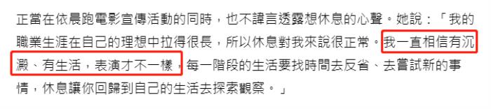 对林依晨而言,自己的演艺生涯只是暂停并不是终止,她想要休息一段时间,在生活中沉淀自己,将来以更好的状态回归演艺界。