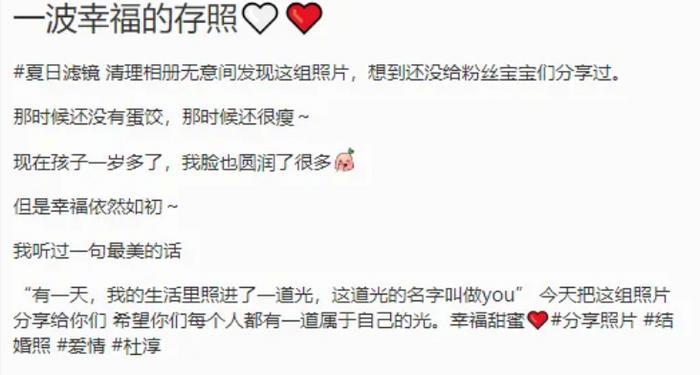 杜淳妻子晒结婚照,称有了蛋饺变胖了,公开向杜淳说情话