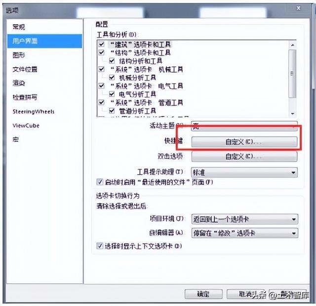 3、在“用户界面”窗口中有快捷键的“自定义”,点击“自定义”;