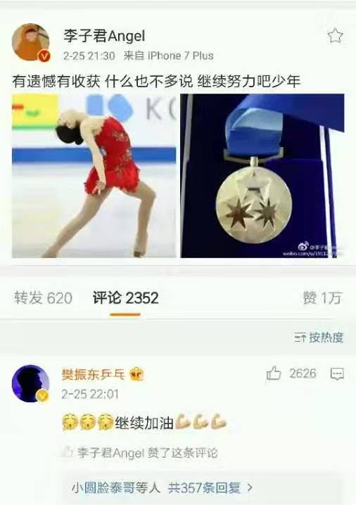 李子君也会在评论与樊振东“互撩”,不仅如此就连很多的国乒队员也都在李子君的微博下面评论,要知道虽然都是运动员,但是项目不同,甚至一个是夏季运动会的项目,一个是冬季运动会的项目见面的机会都不多,如果不是因为樊振东,可能国乒的这些队员与李子君之间也是没有交集的。