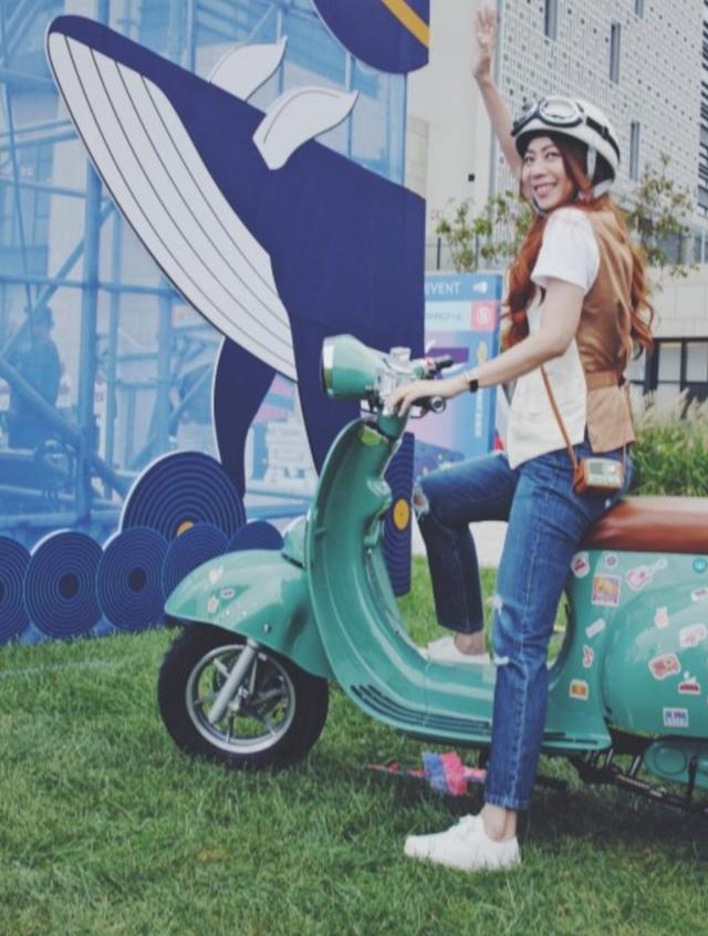 在发布会的现场,陈绮贞骑着复古机车进场,斜挎着一台复古绿猫王收音机,身穿一件白色马甲搭配蓝色牛仔裤,以《旅行的意义》中经典造型登场,打扮的十分青春有活力。