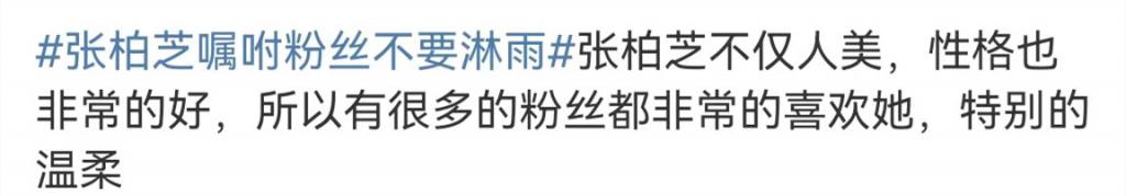 当天节目录制结束后已是晚上,张柏芝看到还在等待的粉丝,立马走上前亲切地和粉丝说:" 不要再淋雨了。" 随后,张柏芝接过粉丝的手机。粉丝看到激动地说:" 视频吗,你要拍视频吗?" 张柏芝回复:" 没关系,那你不要再淋雨了啊。" 接着,张柏芝又和粉丝合影,并对粉丝说:" 谢谢,辛苦了,新年快乐!" 张柏芝好宠粉丝,这种偶像和粉丝的双向奔赴很令人羡慕。她说话也十分温柔,让人听了如沐春风。