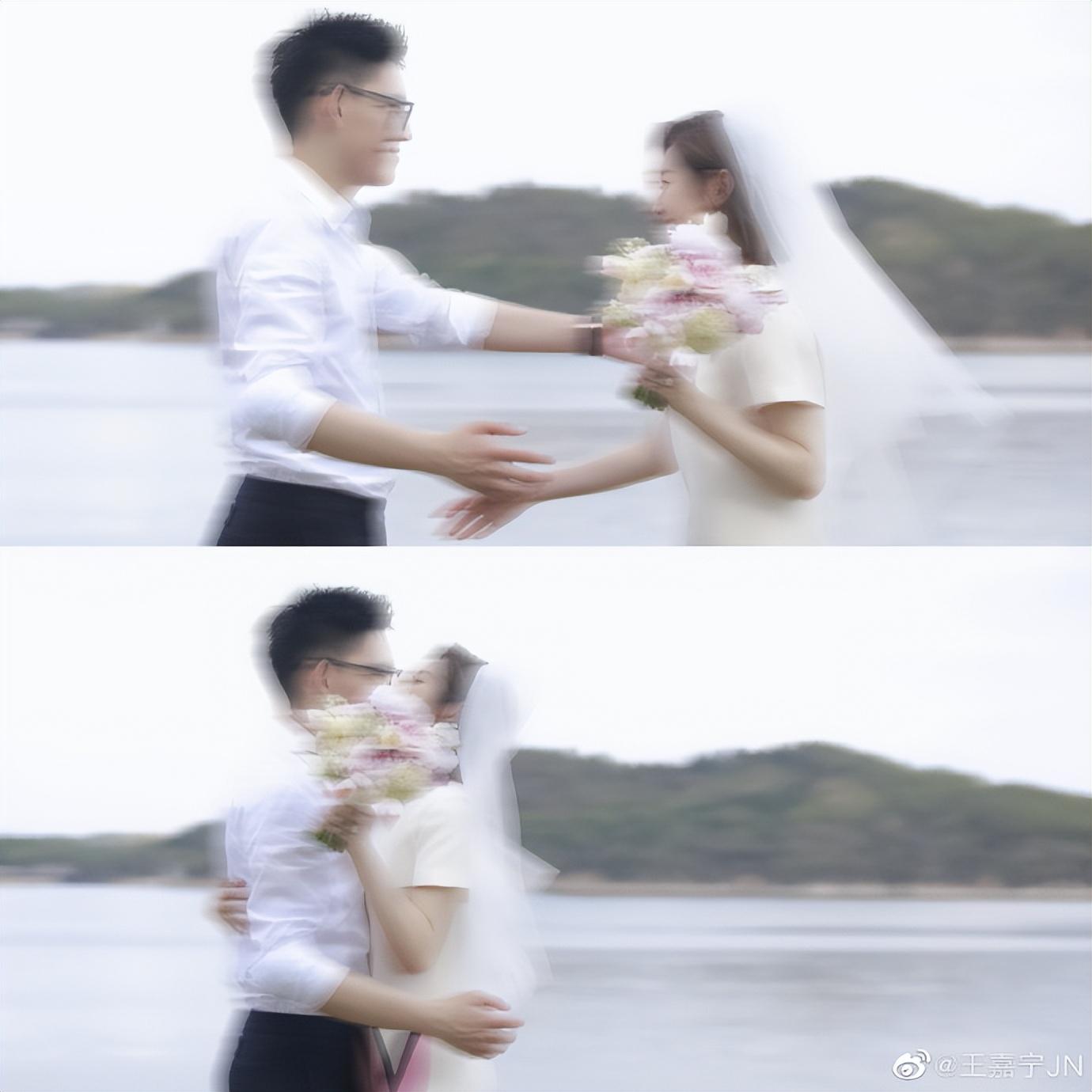 王嘉宁还晒出两人的结婚照,虽然照片有些模糊,但身穿婚纱的王嘉宁一脸的幸福难以遮掩,她奔跑着冲向老公的怀抱中,两人尽情拥抱,画面浪漫到极点。