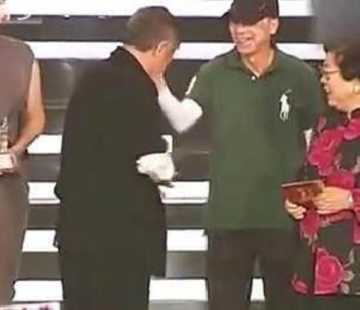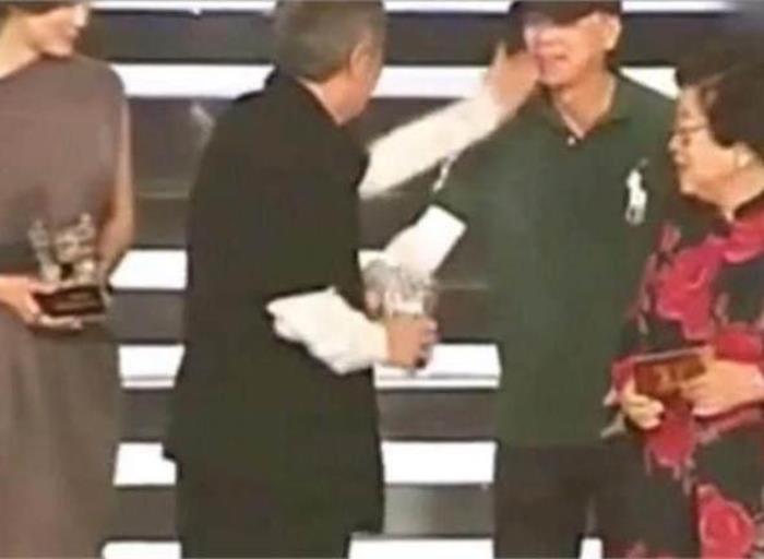 冯小刚这么口误估计是民间一直传闻赵本山是黑社会吧,这句黑社会似乎给赵本山吓得不轻,上去颁奖的时候直接给了一巴掌,这个是实实在在的一巴掌不是抚摸脸庞,打的冯小刚恋都抖了一下。