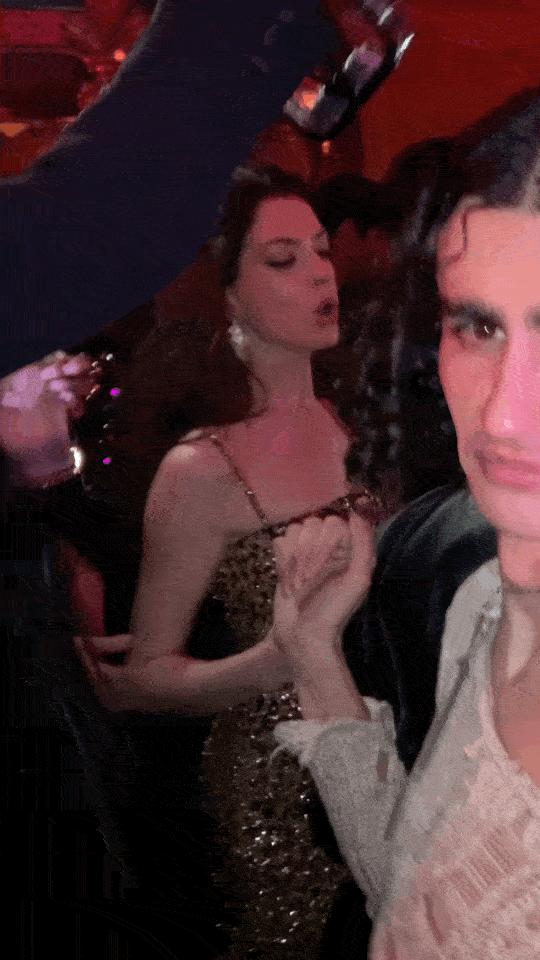 秀后派对中安妮 · 海瑟薇尽情唱歌跳舞 ↓