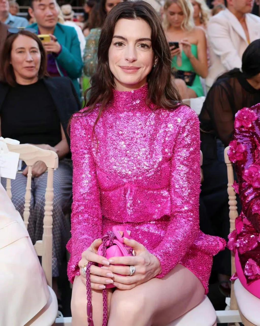 这一身,也只有安妮 · 海瑟薇能 hold 住了。