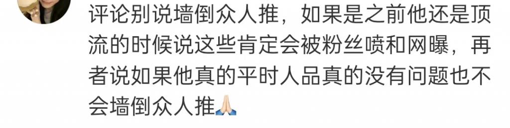 可惜该网友的身份无法证实,我们也没法判断他的爆料属实与否。有网友表示:现在李易峰就是墙倒众人推啊,不乏蹭热度的人。但也有网友称:如果是之前他还是顶流的时候说这些肯定会被粉丝喷和网暴,再说如果他真的平时人品没有问题也不会墙倒众人推。