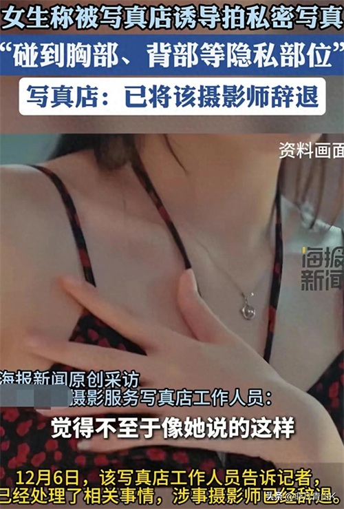 女子被摄影师诱导拍私密写真,多处隐私部位被摸!写真店:已辞退