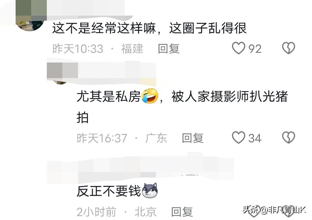 有网友表示:摄影这个圈子很乱,尤其是拍一些性感或写真之类的,真没被扒光了拍就不错了!