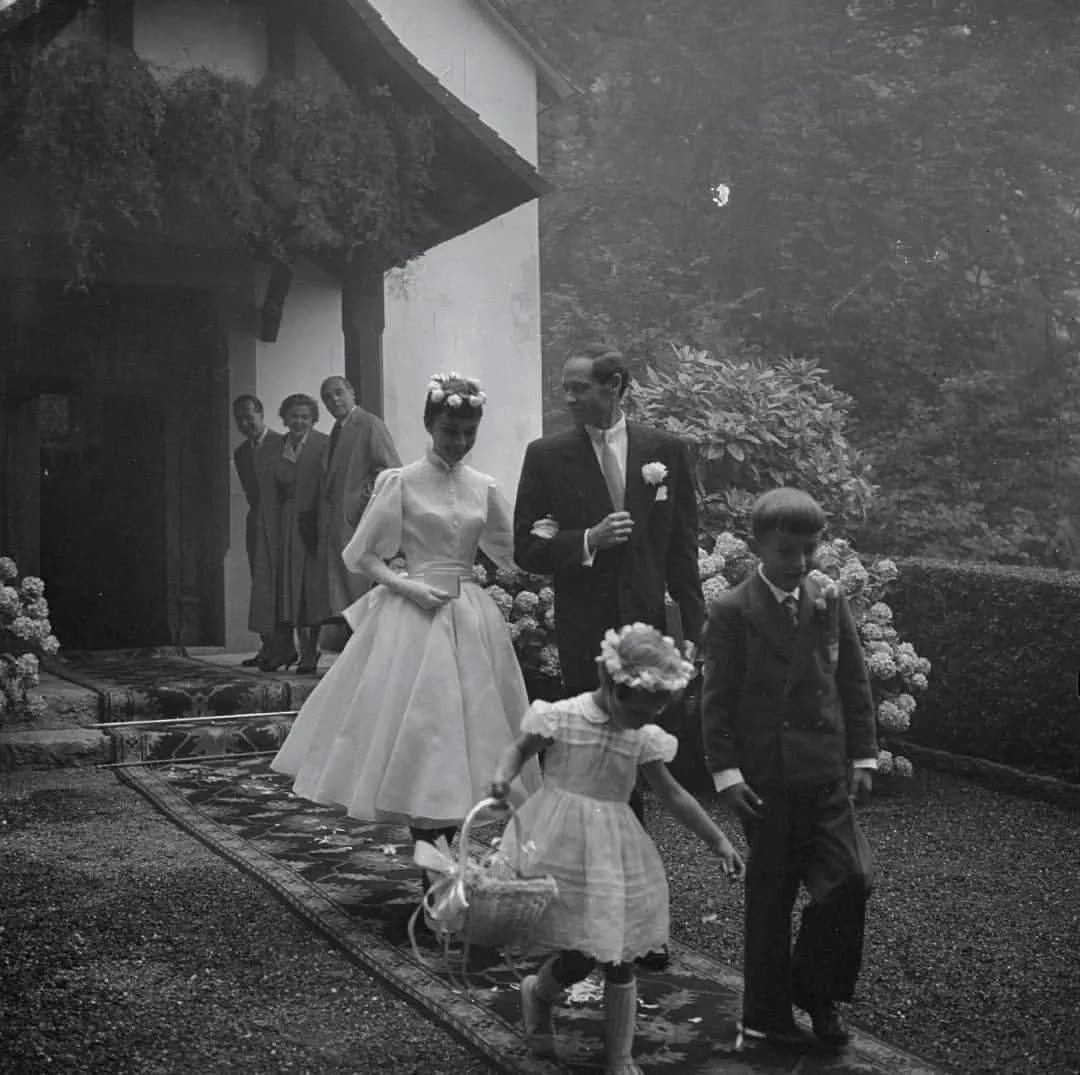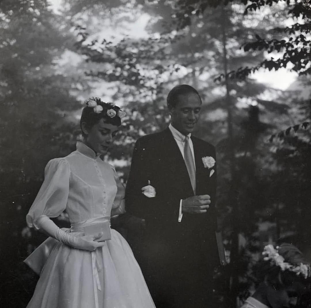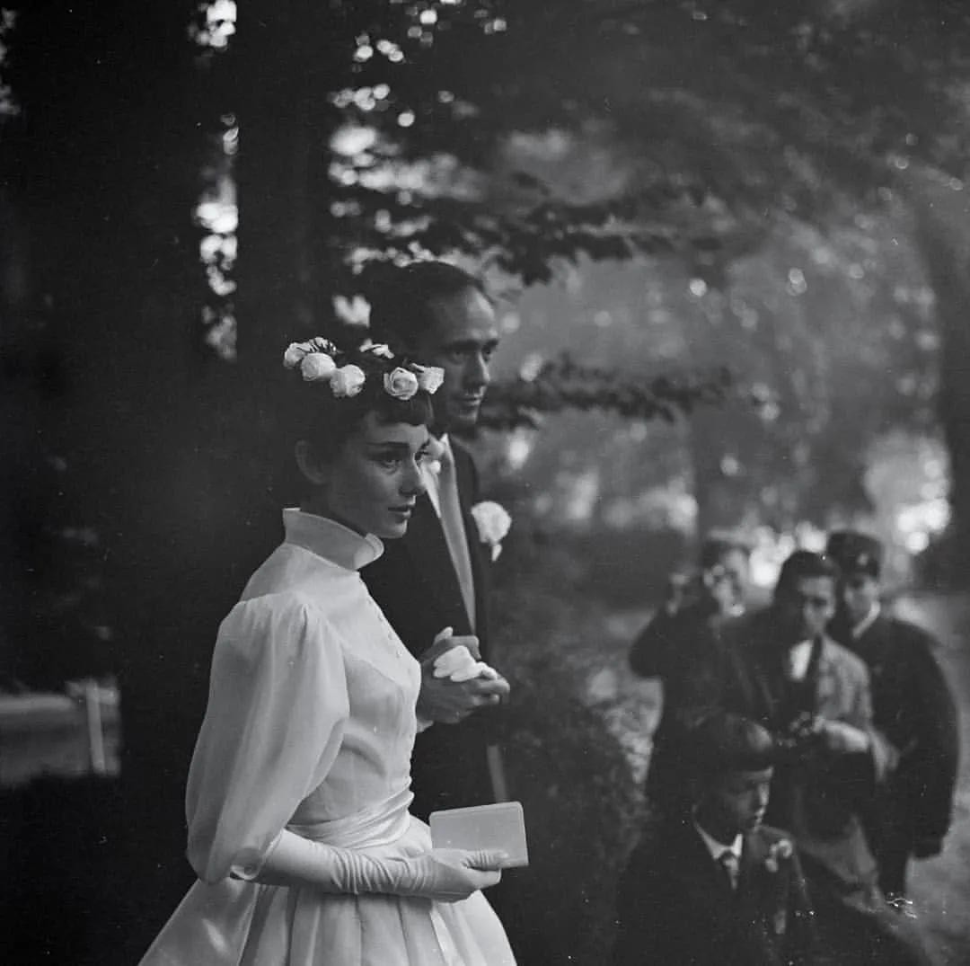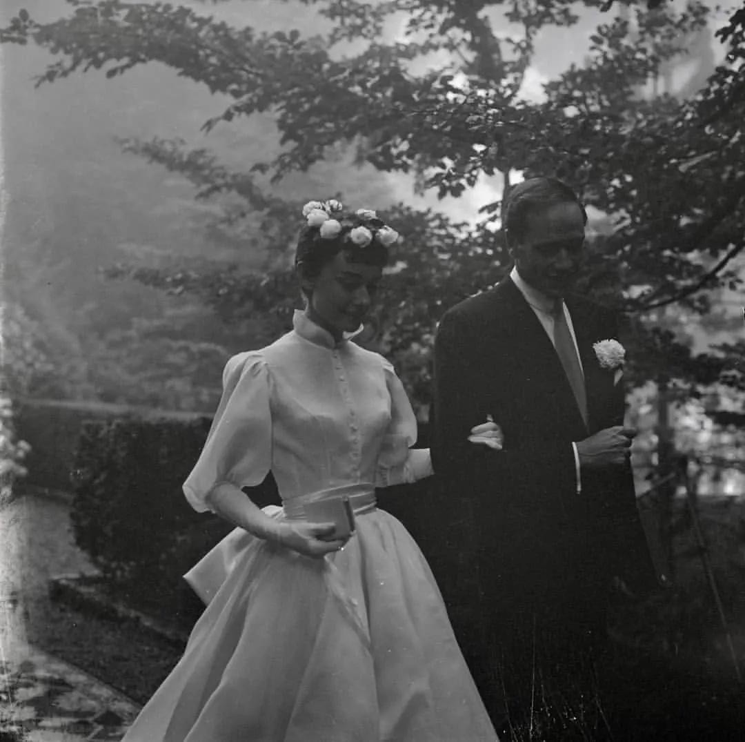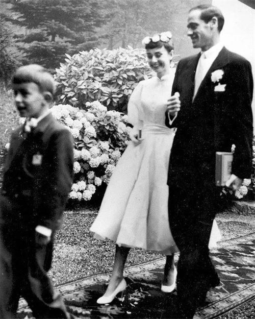 1954年9月25日,赫本与费雷尔在瑞士Burgenstock的一所教堂里,举行了规模很小的婚礼。下图为婚礼当天的照片。