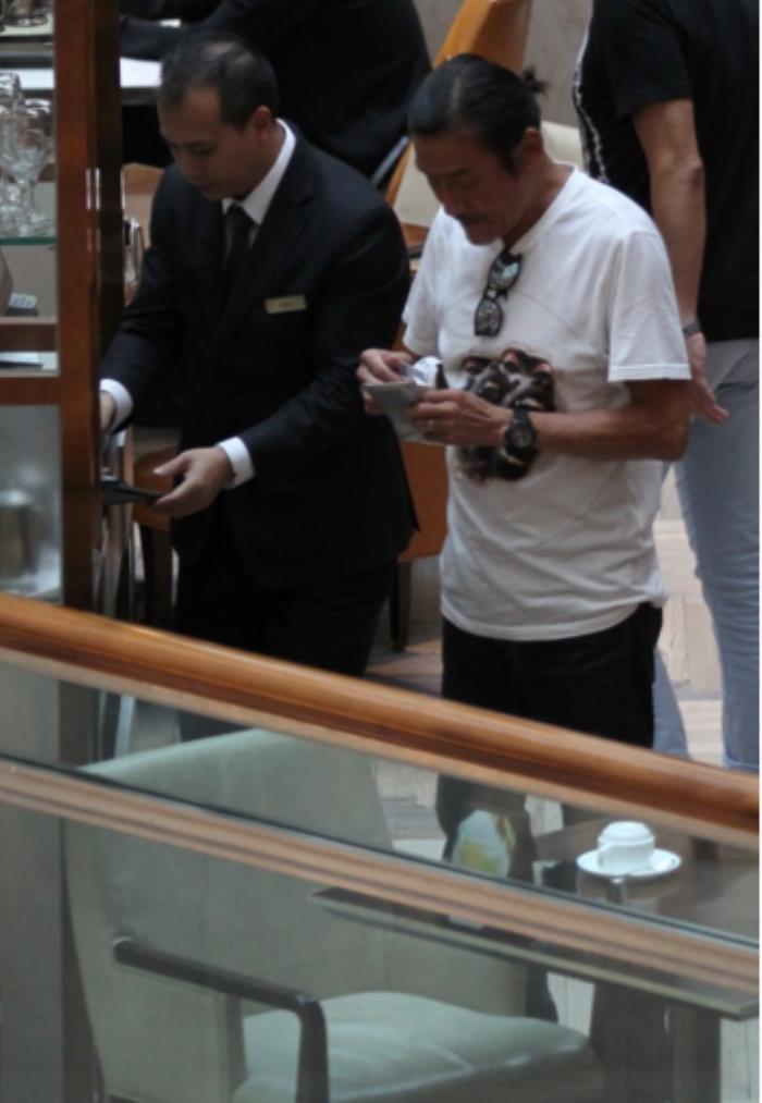 几人一起狂街,江嘉年时不时的看看手机,梁家辉则一致专注的逛街,之后几人一起吃饭,梁家辉非常绅士,进到餐厅后就摘下了墨镜。吃饭的时候一直和友人说话,饭后梁家辉有抢着结账,几人一同离开商场。