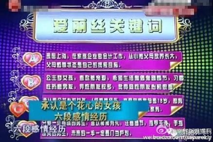MK_fy方媛自曝有6段情史,打扮的十分卡哇伊,自称是爱丽丝公主,期待偶像剧版的恋情,职业是会计,在舅舅家的公司上班,好歹业也是家族企业的白富美人设啊。不过也不排除MK_fy方媛是被节目组坑了,这档节目以剧本狗血著称。