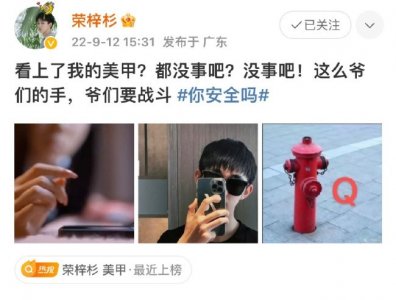 - 荣梓杉美甲上热搜 被网友夸美后呐喊:爷们要战斗