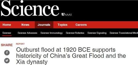 两年前,也就是2016年,南京师范大学地理科学学院的一支国际研究团队,在美国学术期刊《Science》上发表了一篇文章,标题为《公元前1920年的洪水暴发为中国传说中的大洪水和夏朝的存在提供依据》。