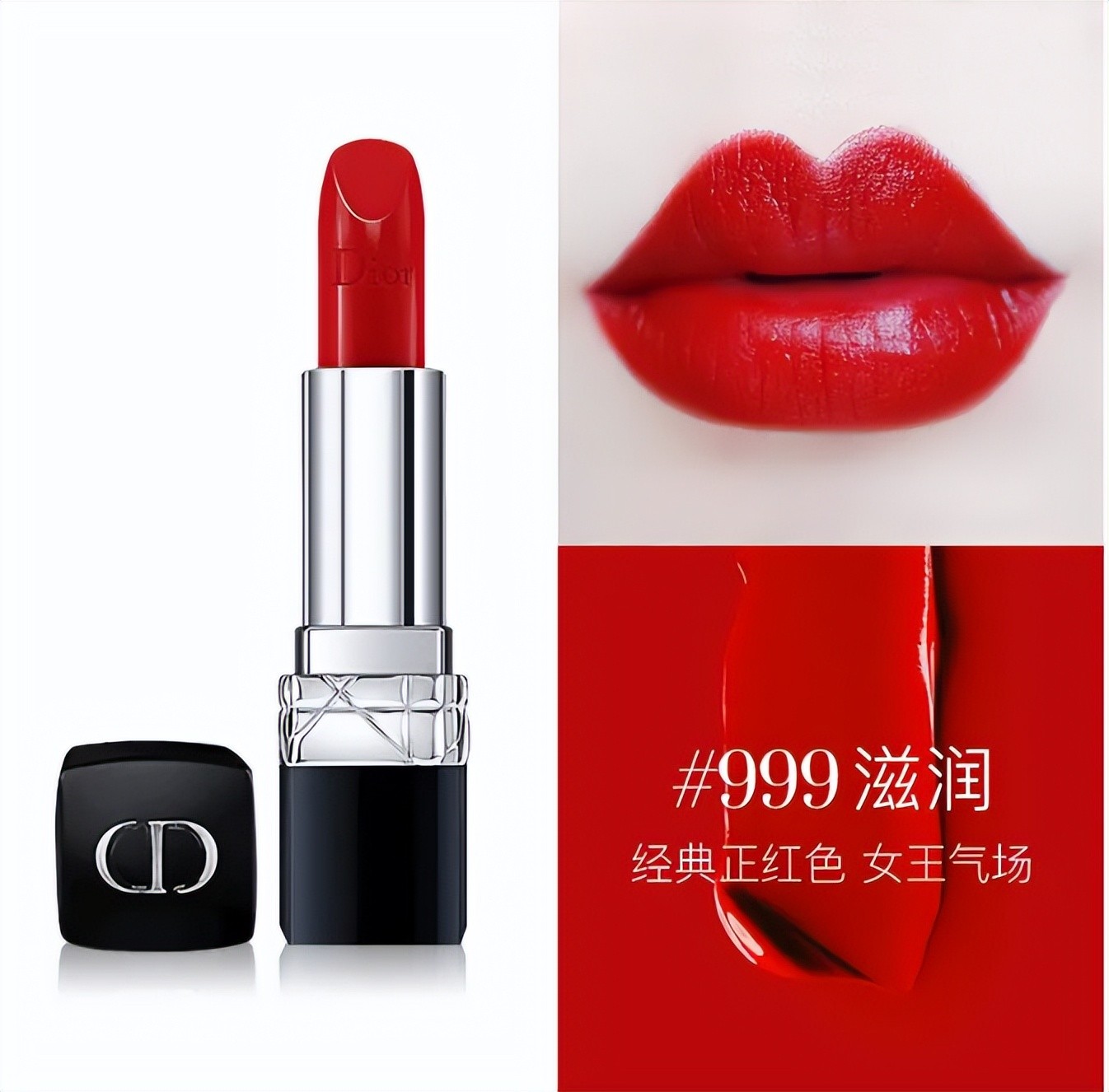 Dior#999口红被称为中正红色,它的滋润度比哑光的要好很多。薄涂时,它呈现出一种少女感十足的颜色;而厚涂时,则更加饱满、有气场。如果你不敢直接尝试正红色,那么Dior#999绝对是一个值得尝试的选择。