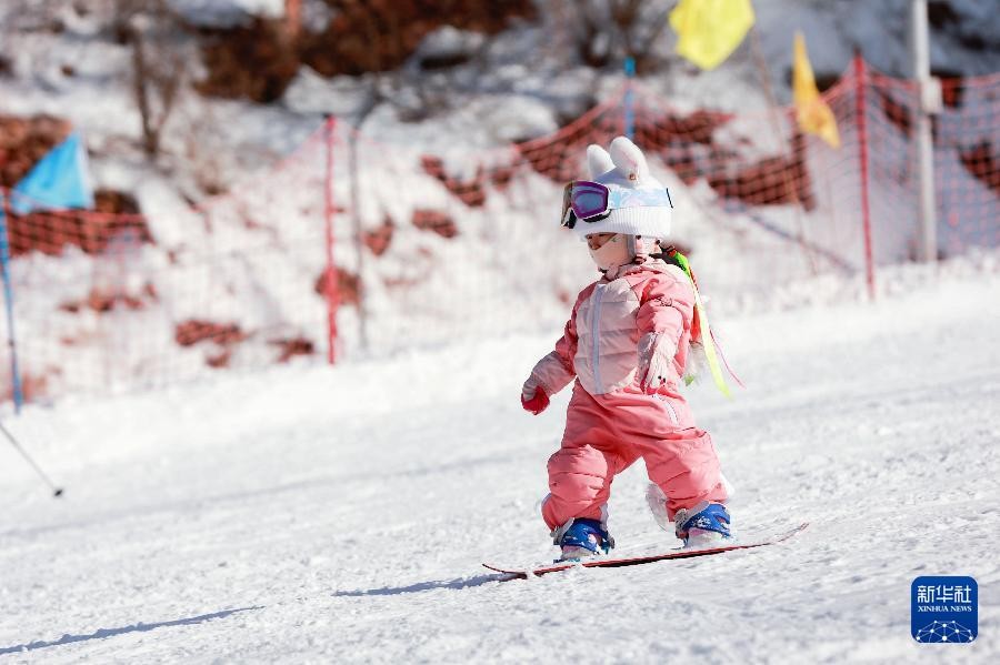 1月1日,小朋友在河北省武安市七步沟滑雪场滑雪。 元旦假期期间,人们用各种方式乐享时光,迎接新年,欢度假期。 新华社记者 王晓 摄