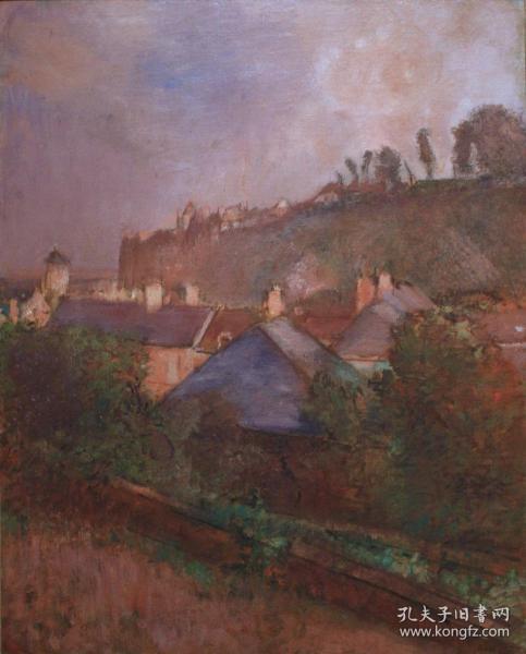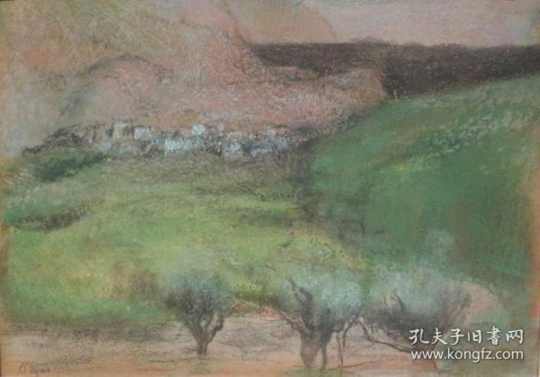 德加与风景:在德加(Edgar Degas (1834–1917))的全部创作中,所占比重并不大的风景画,断断续续地贯穿了他从初期到晚年的作品,看惯了风姿绰约的女子们,风景小品别有番滋味。这大概可以分为大三个集中创作时期:首先是1869年左右创作的一系列色粉画(Pastel)(下图6-9);接着,是1890年代中期完成的独幅版画(Monotype)以及色粉画作品群(下图3-6)。最终来到1890年代后期,德加曾一度痴迷于描绘法国索姆河畔圣瓦莱里(Saint-Valéry-sur-Somme in Picardy)美丽而朴实的乡村景色(下图1-3)。1890年10月,德加拜访了朋友皮埃尔·乔治·让尼奥(Pierre-Georges Jeanniot)的勃艮第庄园,从而进行了一系列的景观单色化(Monotype)工作。 在接下来的两年中,他制作了大约50种这类作品,并于1892年在Durand-Ruel画廊展出了其中的一组。尽管艺术家们称这些为“虚构的风景”,但目前的看来,这些作品可以被认为反映出了他真实的经历。 他的确曾乘坐马车穿越了勃艮第的土地,并将这里的草木印刻在他的脑海里。 彩色的油彩上面覆盖着细碎的粉彩,朦胧且抽象化了南法晴空万里下的、一览无余的山景。索姆河畔圣瓦莱里,是流经法国南部索姆河口的一个村庄,这是他1840-50年代与家人一起度假的回忆之地。直到1896年,他和弟弟René及其家人再次来到了这个村庄。在这里,德加得到了画家路易·布拉卡瓦尔( Louis Braquaval 1854-1919)的知遇,1898年的夏天,他也再次前去拜访。虽然德加将这里的风景绘制成约13幅油画(1-3)。但是却没有留下一幅素描作品,他也同样用相机捕捉到了这个村庄的许多美好的瞬间,不过如今早已遗失在历史的风里。另外,他不喜欢在户外创作,这与同时代的潮流是逆向而行的,因此,可以推测这其中许多作品也是在工作室内完成的。