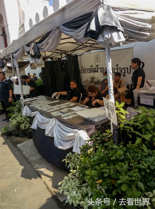 治丧期间泰国各地民众会来皇宫瞻仰国王的遗体,此为便民工作点