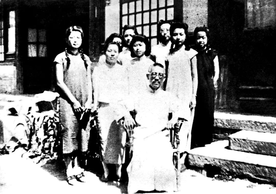 1943年顾随(前坐者)与学生合影,后排右二为叶嘉莹