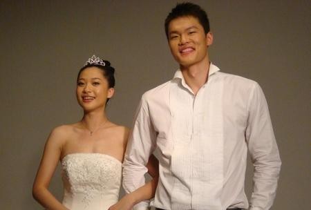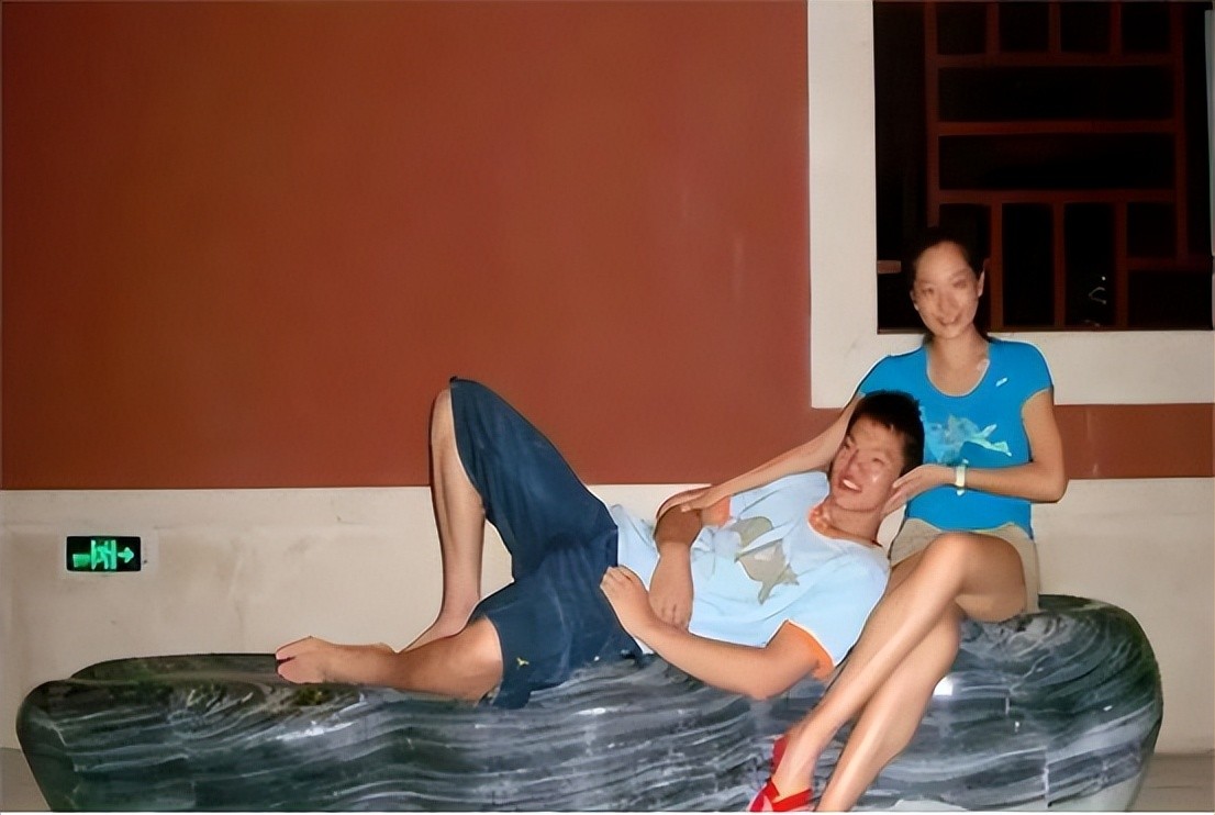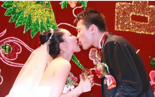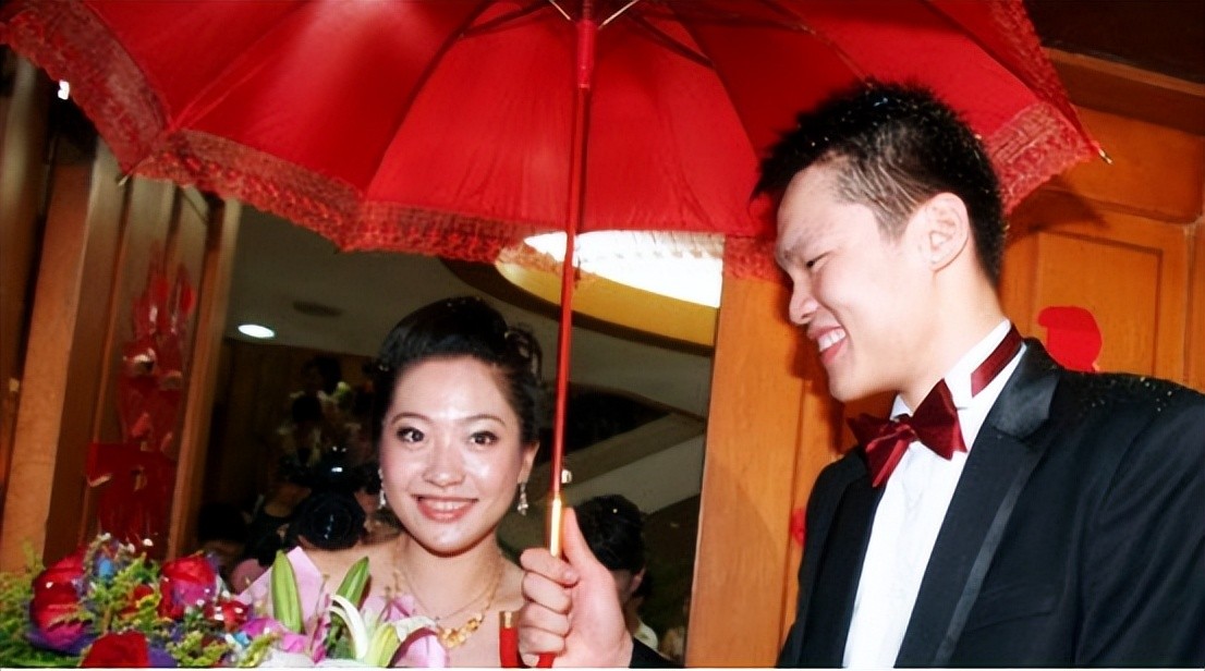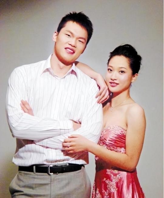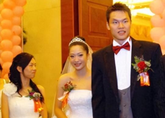 新娘就是昔日的体操女生胡美,而新郎则是国家篮球队的主力选手朱芳雨。